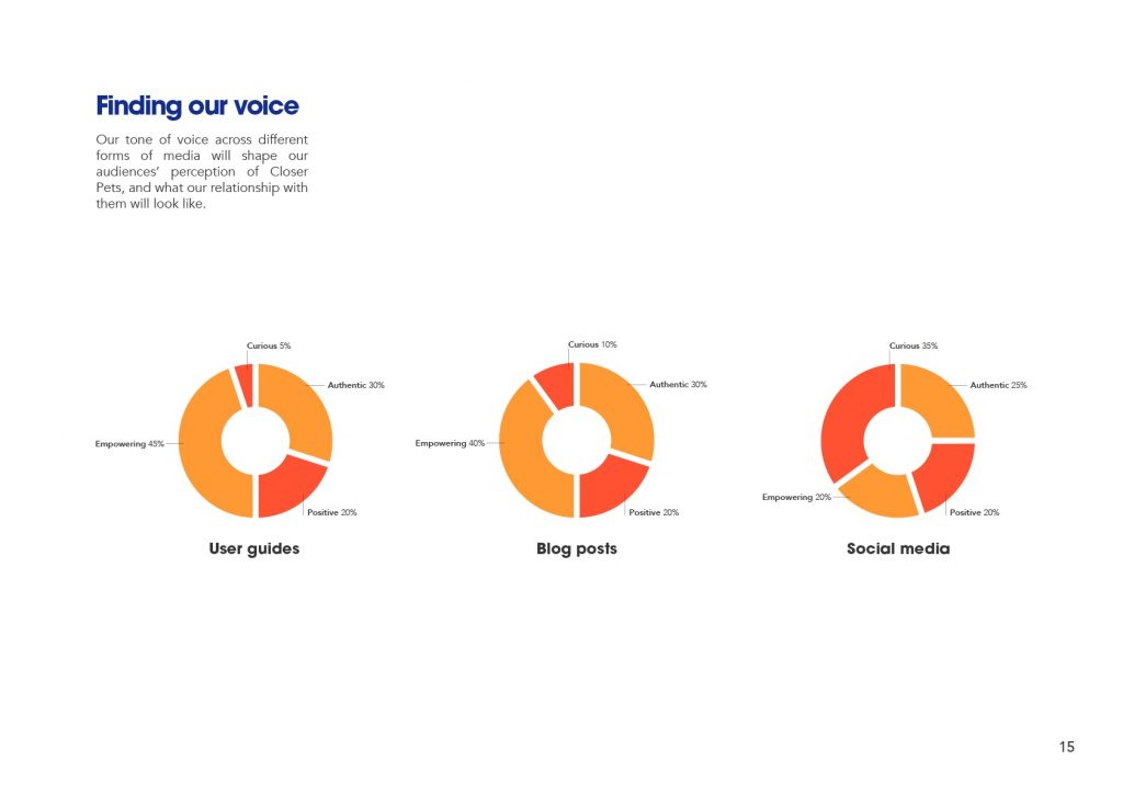 A snapshot of brand voice guidelines created for Closer Pets