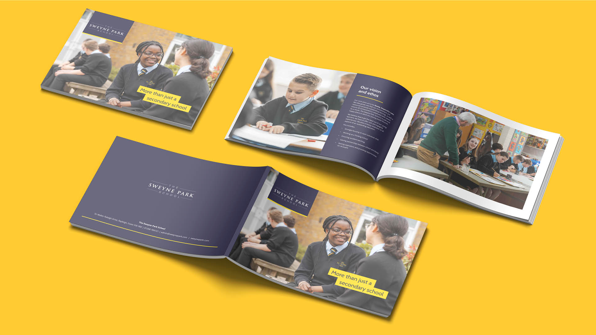 Sweyne Park School is a thriving academy for pupils aged 11 to 19, based in Rayleigh, Essex. Following the successful delivery of their new website, the school commissioned us to refresh their print collateral and replace the informal digital print-outs they were using at the time.
